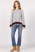 Tanea long sleeve crew neck sweater features a spirited relaxing fit. A touch of modern flair for any lifestyle with wide colorblock stripe band, go-to companion for the leisure out-n-about.