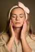 Begin by cleansing your skin with witch hazel and gently pat your face dry.
