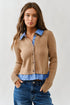 This Cable Knit Mixed Media Cardigan Features a slim fit. Knit cardigan with cotton collar and hem. Front button down closure, Perfect outfit for transition.