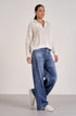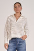 Elan half zip, white knit sweater, open knit pullover, women's designer sweater, casual chic layering, breathable quarter zip, pointelle knit top, Elan clothing.