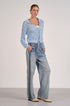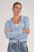 Elan tie sweater, open knit cardigan, tie-front sweater, crochet flyaway, lightweight summer sweater, boho knitwear, light blue cardigan, resort wear layering, Elan clothing.