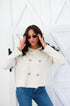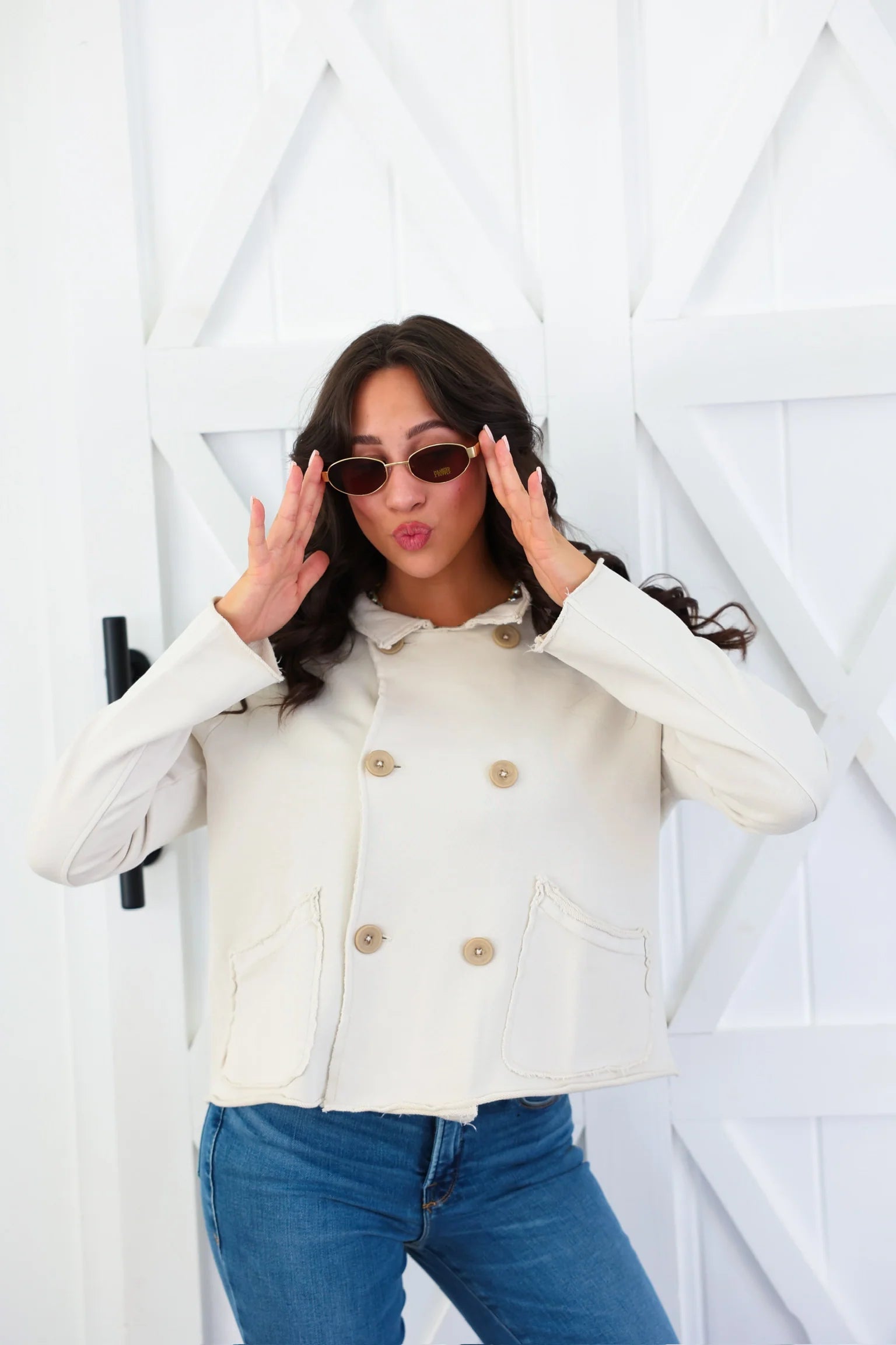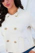 • Chic double-breasted front detailing.