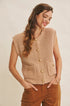 A cozy layering piece with timeless charm — this chunky knit vest blends vintage-inspired details with FW25’s romantic mood. Crafted from a soft cotton-acrylic blend, it offers a plush, weighty feel without being bulky. The sleeveless design is balanced with a row of antique-style buttons that lend a subtle, heirloom touch. Easy to layer over blouses or lightweight knits, this vest adds warmth and texture to any transitional wardrobe. Whether worn open for a casual drape or buttoned for a structured look, it elevates everyday outfits with soft sophistication. A best-seller from our FW25 collection — retailers responded to its tactile softness and nostalgic design during market, making it a must-have staple this season. Add this effortlessly romantic piece to your lineup and capture the warmth and charm your customers will love. Features - Sleeveless - Soft chunky sweater - Vest Size + Fit Model is 5'9.5" and wearing a size Small. Please refer to our size chart.