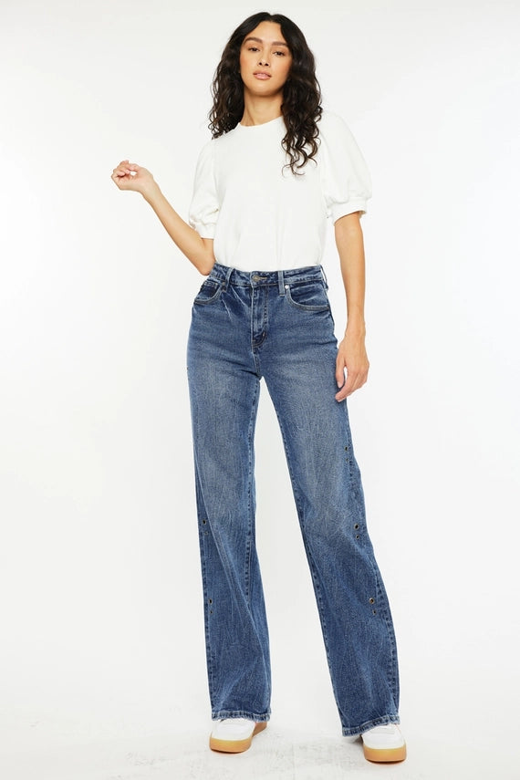 Open pack grommet high rise 90's flare jeans