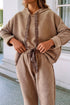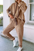 Elevate your loungewear game with this luxe corduroy two-piece set in a versatile dark khaki shade. The oversized pullover hoodie features a relaxed fit, adjustable leopard-print drawstring hood, kangaroo pocket, and cropped hem that pairs perfectly with the high-waisted jogger pants.