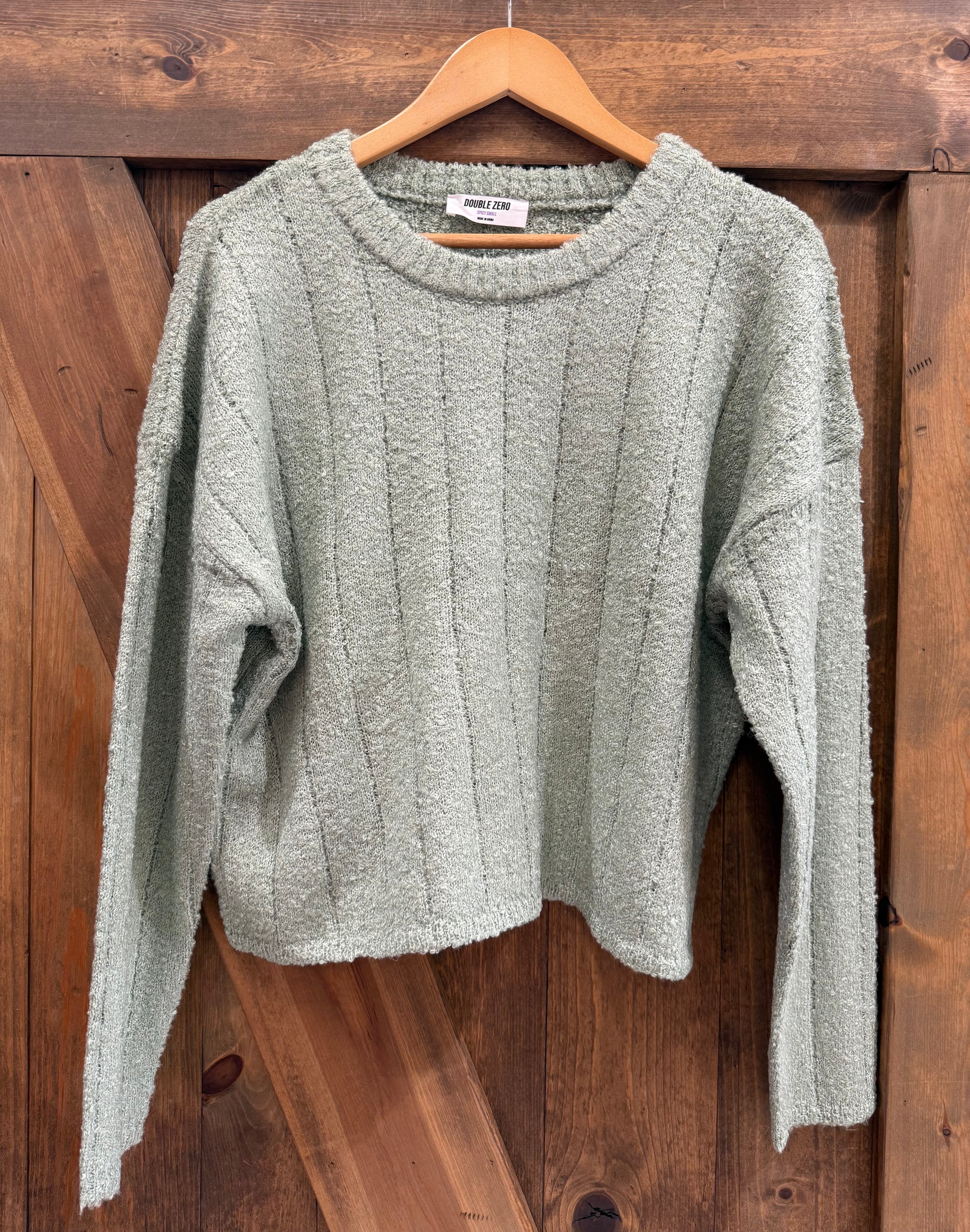 Sage Green Textured Crew Neck Sweater