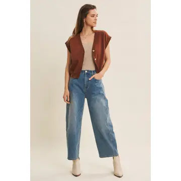 An elevated essential that keeps on selling—this bestselling cotton knit is back for FW25 with new seasonal shades. Designed to be worn as a vest, sleeveless cardigan, or layered under outerwear, it's the definition of multi-way versatility. Made from 100% breathable cotton, the sweater knit is soft yet structured, draping beautifully across the body. Details like wide cap sleeves, a relaxed V-neckline, and real buttons bring subtle luxury to a quiet silhouette. Whether styled with wide-leg pants or tucked into skirts, this piece anchors transitional dressing with ease.