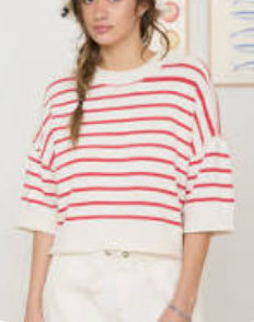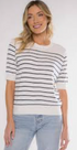 Khaki Stripe Oversized Short Sleeve Sweater | Relaxed Drop Shoulder Knit