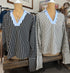 Effortlessly chic and perfectly versatile, this Striped V-Neck Collared Top is your new go-to for any season. Featuring bold vertical stripes, a contrasting sky-blue collar and neckline, and a relaxed fit, it’s a stylish blend of classic and modern. The lightweight knit fabric drapes beautifully, while the cuffed sleeves add a polished touch. Available in two colors, this top pairs easily with your favorite denim for a casual look or can be dressed up with trousers for the office!