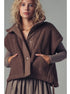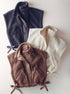 Stay warm and stylish in this cozy sherpa vest featuring a smooth quilted collar and adjustable side ties. Its plush texture and roomy fit make it perfect for layering with dresses or casual tops during cool-weather months. Features: • Soft textured sherpa exterior • Adjustable side ties and quilted collar • Roomy front pockets • Made in China Measurements (Size S): The vest measures approximately 23" across the bust and 22.5" in length when laid flat Fit: Relaxed, boxy silhouette with dropped shoulders