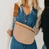 Our signature 3 Sister Studs are now officially trademarked! We're in the process of transitioning the Westlyn to feature these iconic studs—just like the rest of our bags. During this transition, your Westlyn may arrive with or without the studs. Either way, it’s the same style you love! Meet the Westlyn Woven Bum Bag! Gorgeous woven vegan leather available in solid colors with a unique block design on the strap gives us edgy, rocker vibes. We also have it available in checkered prints, and metallic! Beautiful hardware with a zipper closure with beige and black chevron interior, and a zippered slash pocket on the inside. This crossbody bag is the perfect accessory to elevate any outfit! Measurements:12"L x 8"H x 24"-46" strap Material: Vegan Leather